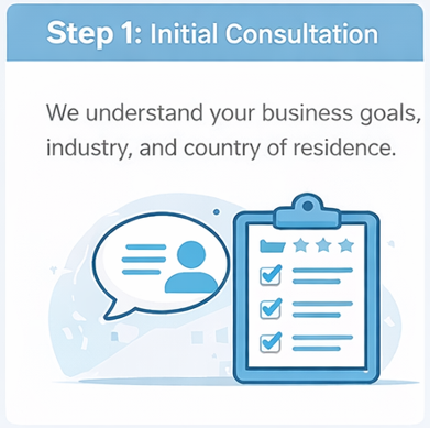 Consult with our experts to understand the best company structure, jurisdiction, and requirements for your business in Dubai.